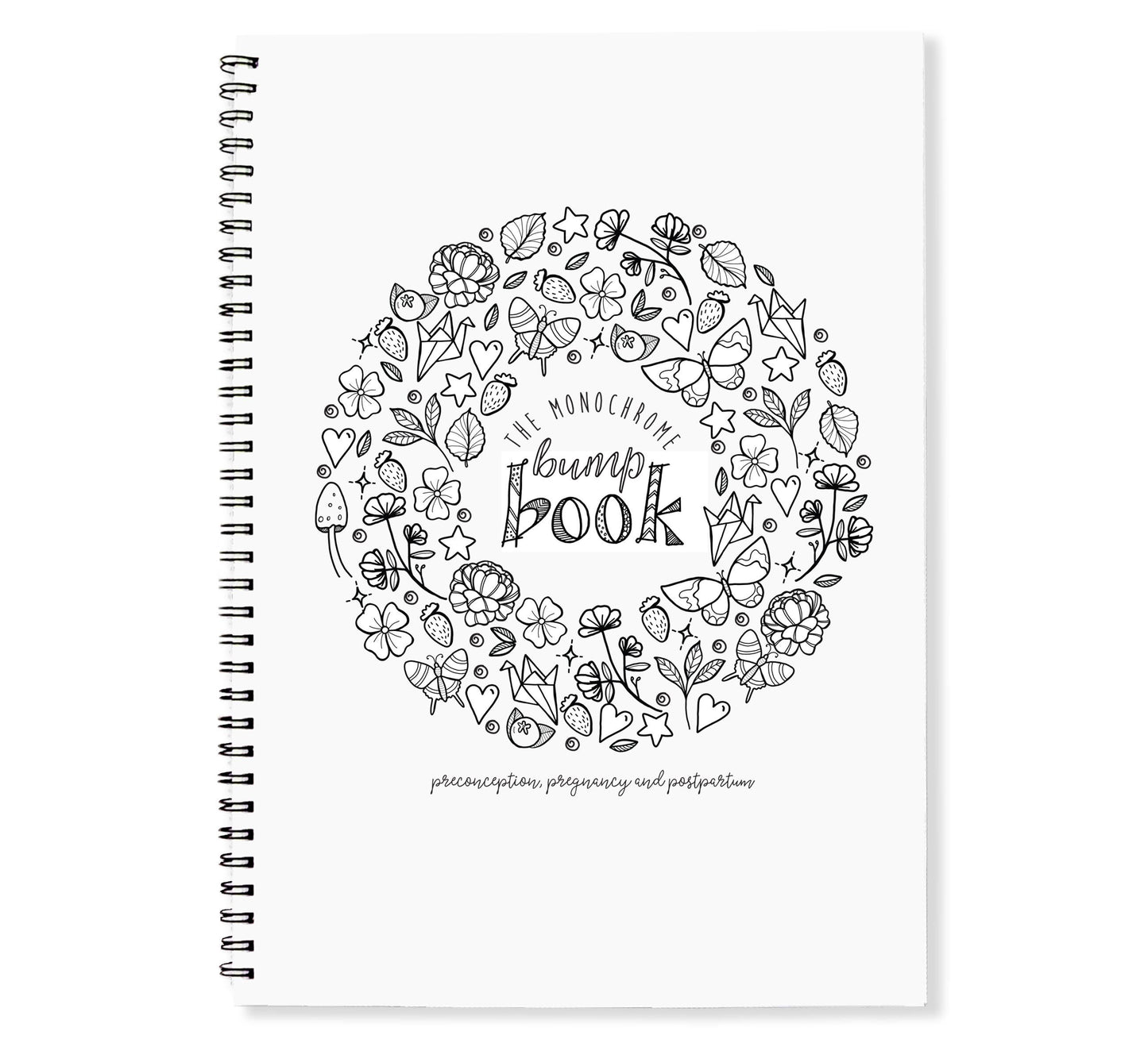 The Blueberry Co Monochrome Bump Book is designed to suit every journey through pregnancy from IVF to au-natural conceptions all the way to the birth: from premature babies or those that like it in there so long they're overdue!